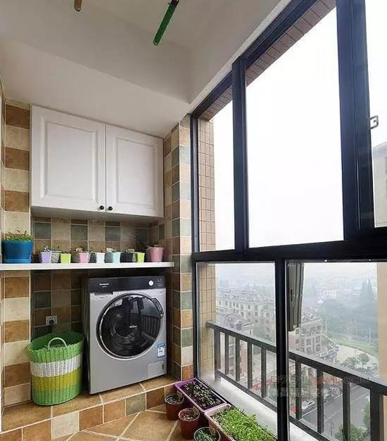一、陽臺(tái)變洗衣+收納功能房當(dāng)家里的洗手間空間比較小,沒法滿足日常洗衣功能時(shí),可以把陽臺(tái)設(shè)計(jì)成洗衣+晾曬+收納+置物的多功能空間。合理劃的設(shè)計(jì),不僅美觀,而且更加實(shí)用。陽臺(tái)一角可以量身打制洗衣柜安置洗衣機(jī),多余的空間還能隨心設(shè)計(jì),無論是擺放休閑桌椅還是栽種花草都是不錯(cuò)的選擇。