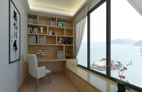 二、陽臺(tái)變書房當(dāng)家里臥室比較少,想要書房的時(shí)候,陽臺(tái)就可以發(fā)揮作用了,可以用來家庭辦公,還能周末放松,想象一下周末坐在陽臺(tái)上看書,是一件多么愜意的事情。書房里量身打制書柜、書桌,多余的空間,放置休閑桌椅是個(gè)不錯(cuò)的選擇,讓陽臺(tái)的書房生活變得更小資。