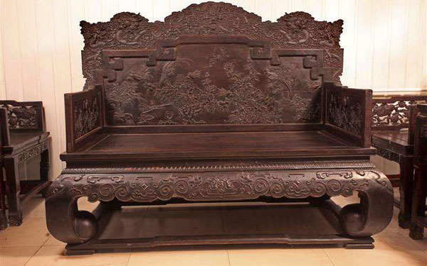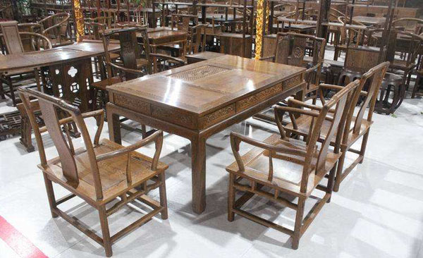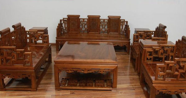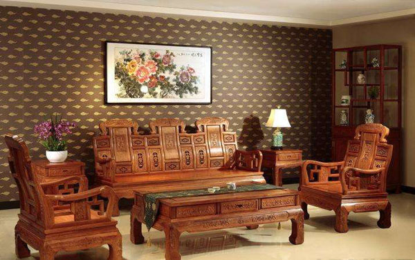 2、花梨木:紫檀類,豆科蝶形花亞科紫檀屬中具優(yōu)質(zhì)深色心材的珍貴樹種?;ɡ婺拘牟倪叢膮^(qū)別明顯,邊材黃白色至灰褐色;心材紅褐色、紫紅色至紫褐色;材色較均勻,可見深色條紋,生長(zhǎng)輪不明顯或略明顯。散孔材或半環(huán)孔材,單管孔,少數(shù)徑列復(fù)管孔,內(nèi)含深色樹膠、沉積物或侵填體。軸向薄壁組織翼狀、聚翼狀、帶狀、環(huán)管束狀和輪界狀。木射線以單列為主,徑面斑紋不明顯或略明顯,弦面具波痕,有光澤,具輕微或顯著清香氣,紋理交錯(cuò),結(jié)構(gòu)細(xì)而勻,多半出現(xiàn)在明式家具上,木質(zhì)致密,顏色從淺黃到暗棕。一般黃花梨家具使用越久,色澤反而越光亮,更適用于現(xiàn)代空間。